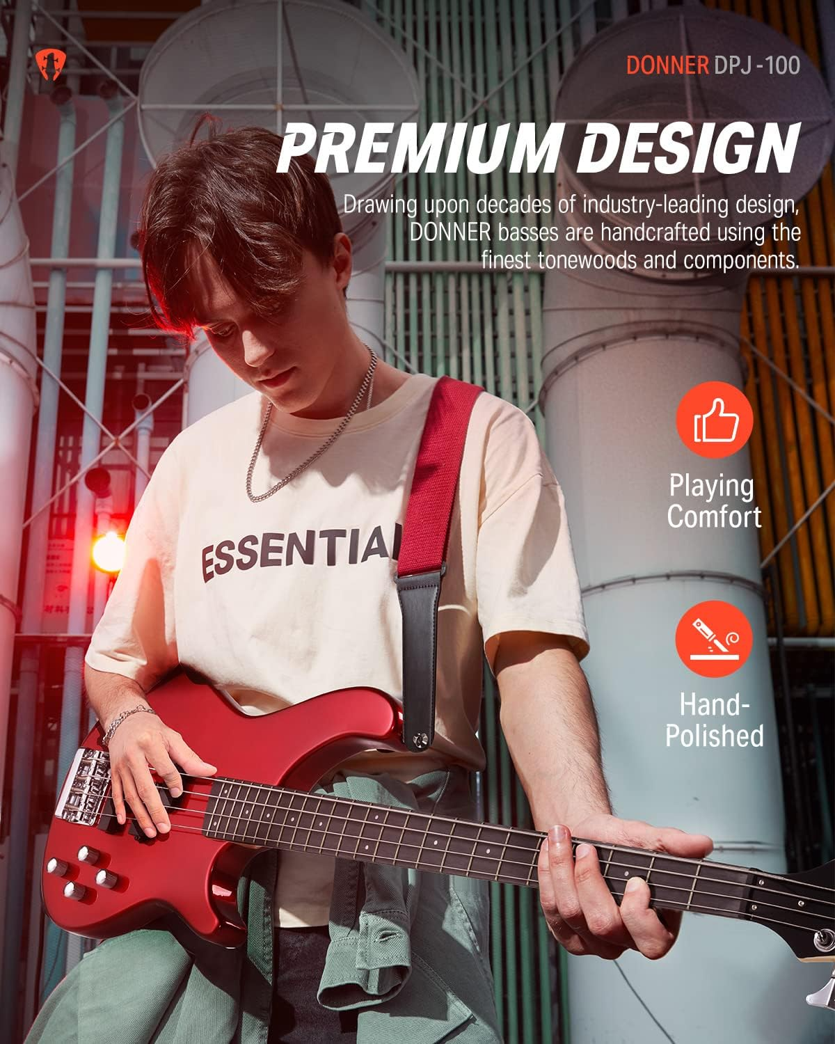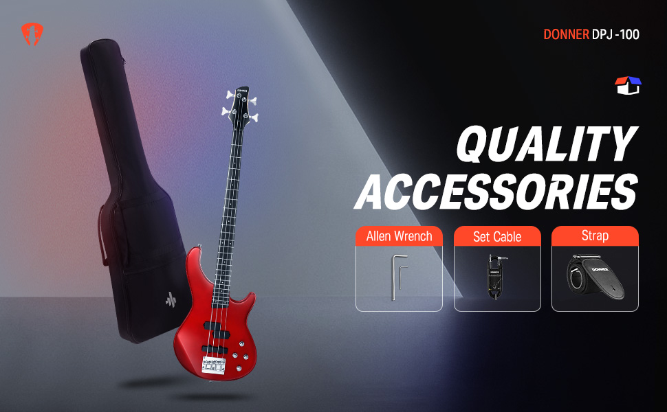 ערכת גיטרה בס למתחילים ומתקדמים DPJ-100 בצבע אדום + שיעורי מתנה מבית DONNER