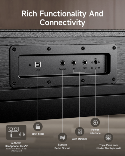 88 קלידים בגודל מלא עם מנגנון Graded Hammer המדמה פסנתר כנף
